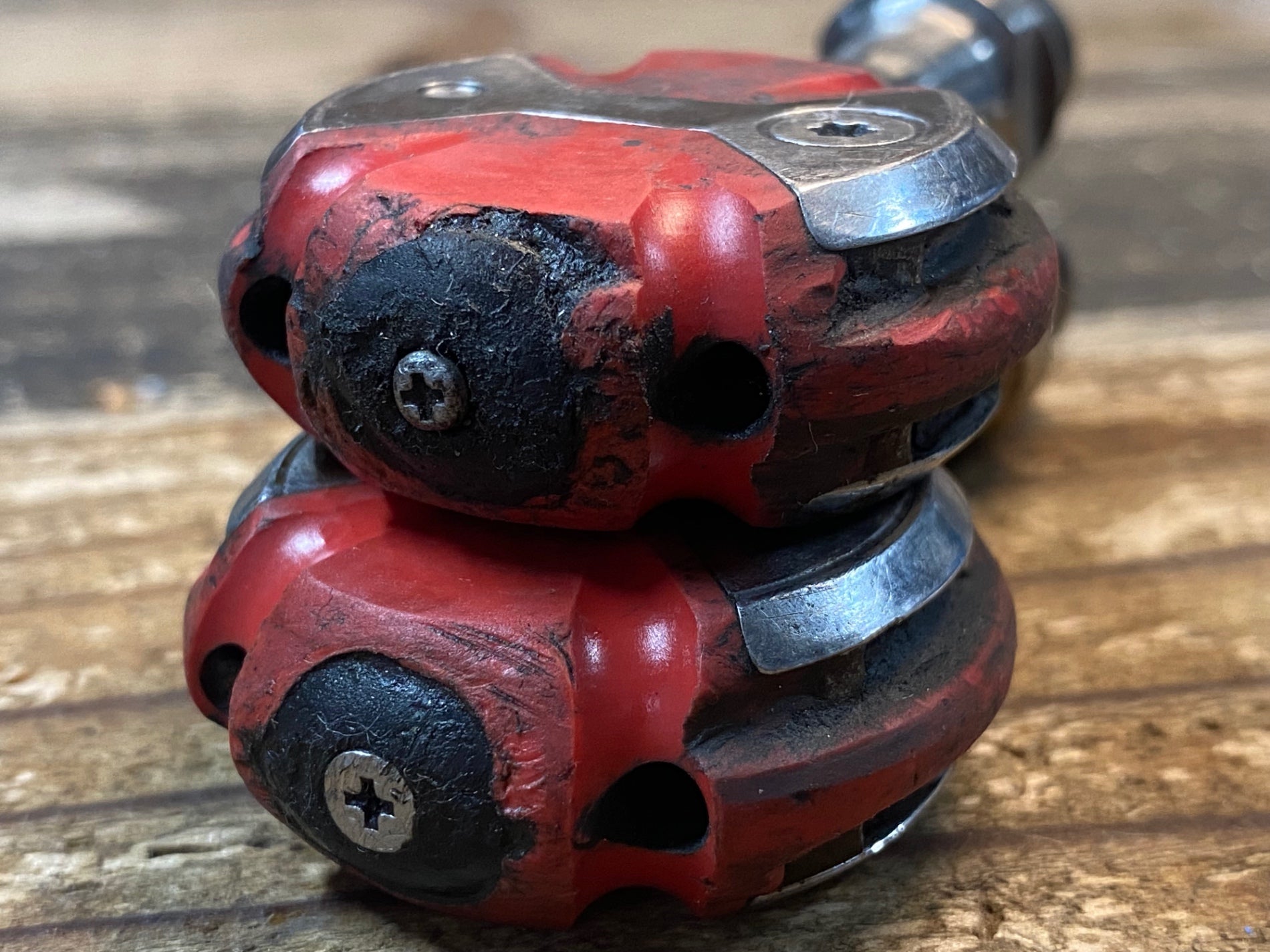 IV192 スピードプレイ SPEEDPLAY ビンディングペダル 赤 チタンシャフト ※シャフトガタ大 ジャンク