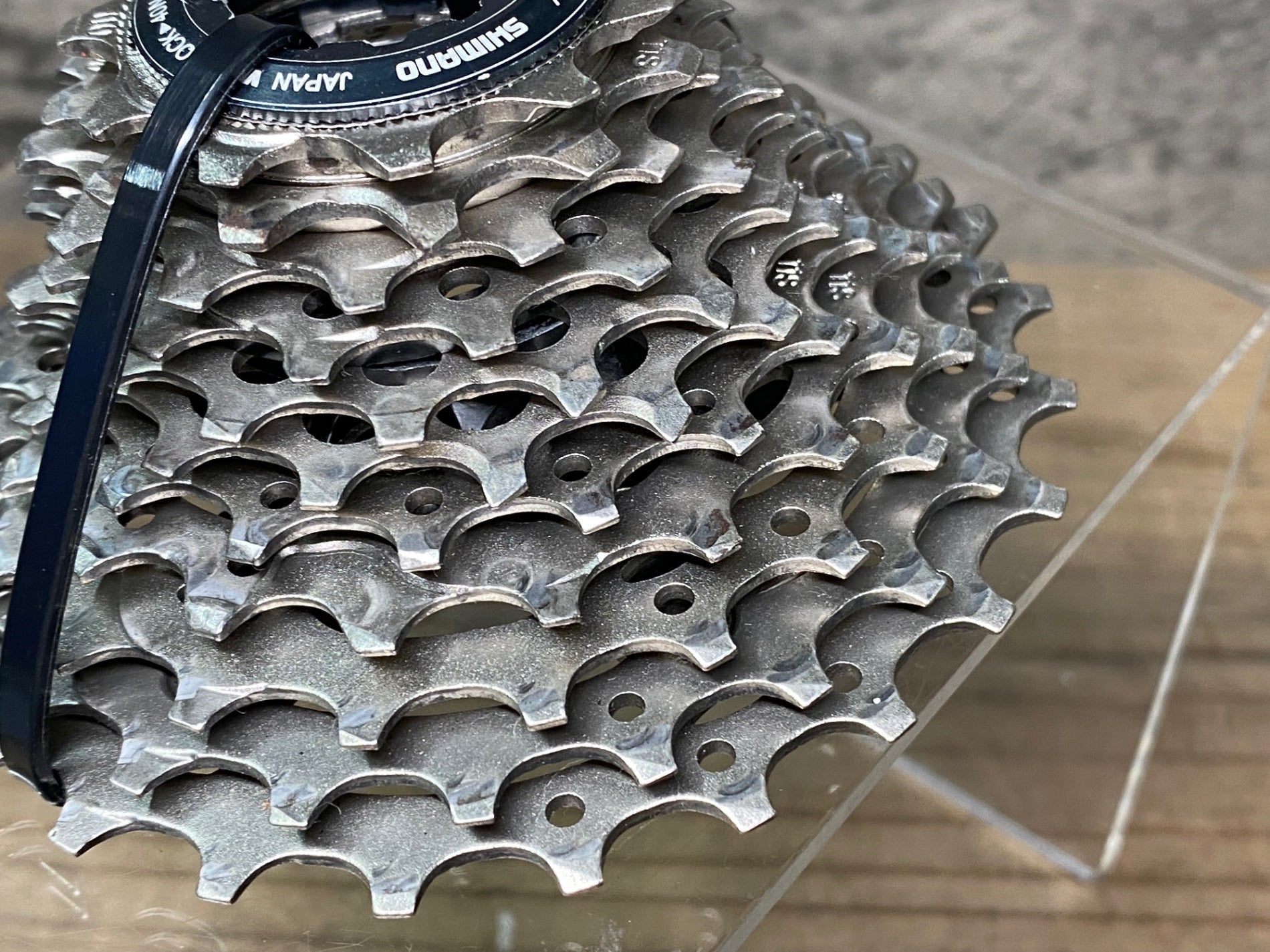 歯に摩耗とチェーン跡があり、若干の汚れの付着が見受けられます。