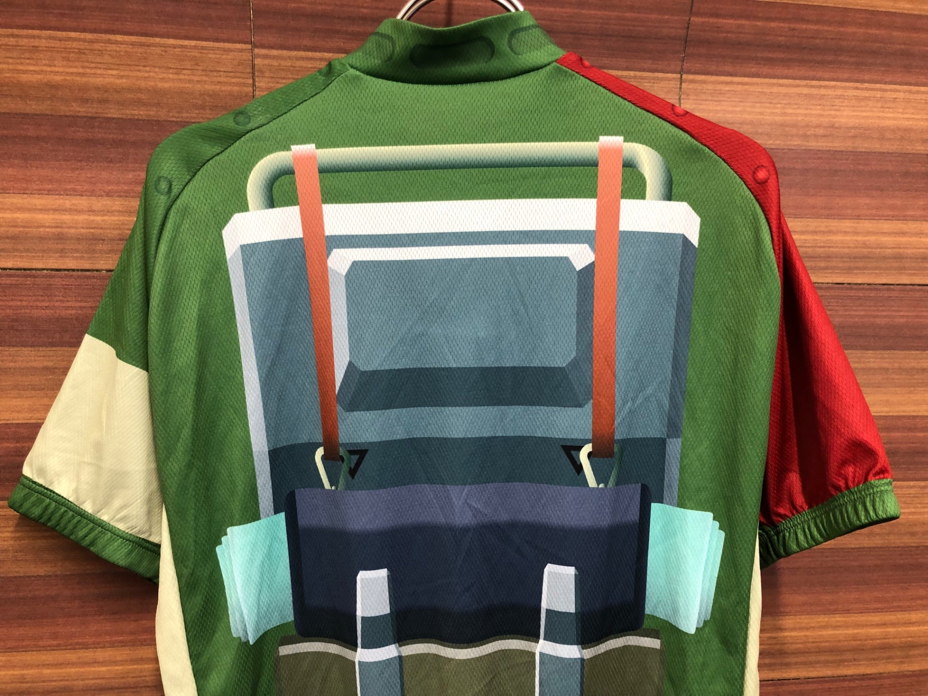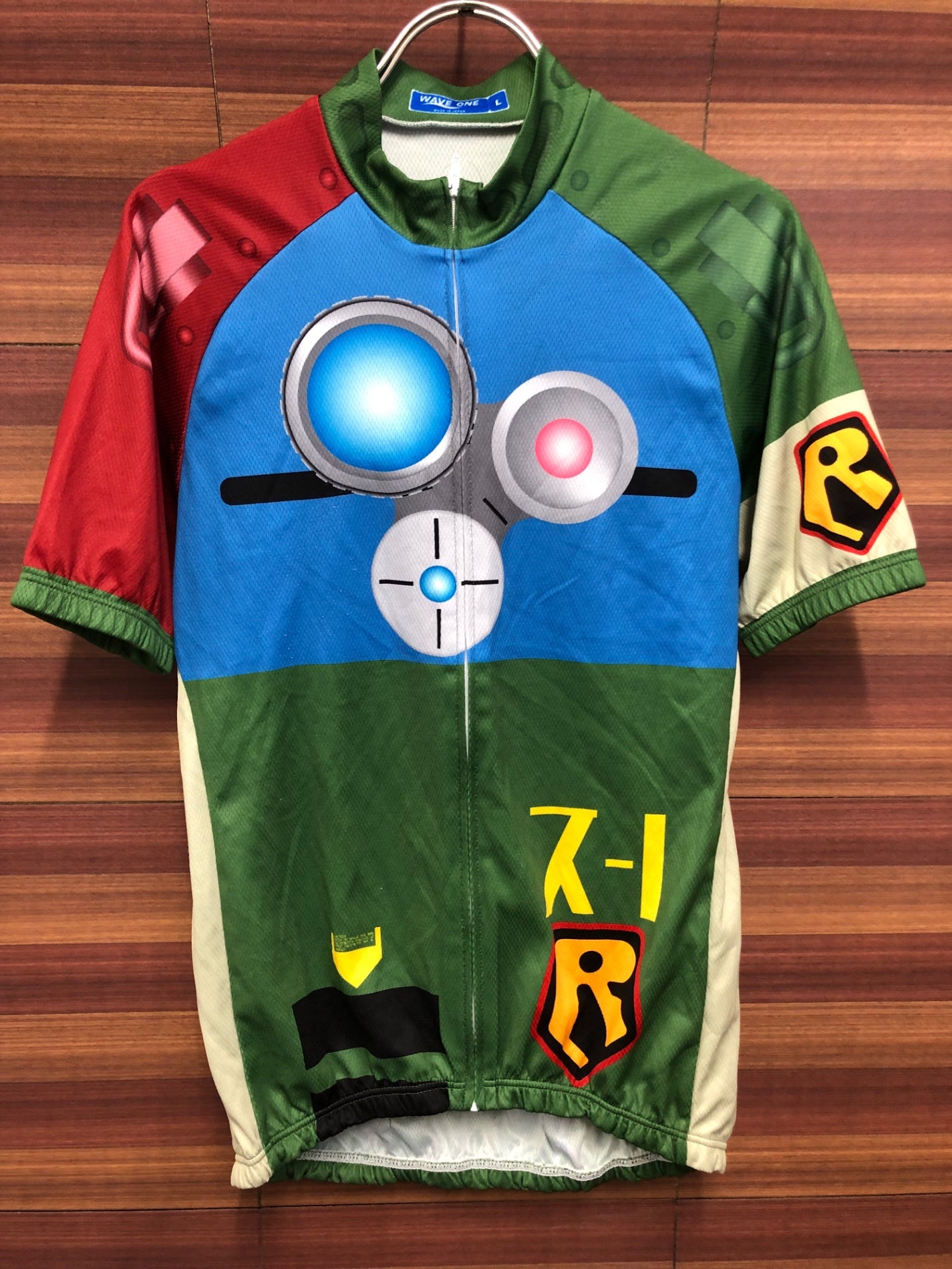 IS995 ウェイブワン WAVE ONE AURORA 半袖 サイクルジャージ 緑 青 赤 L 装甲騎兵ボトムズ スコープドッグ ターボカスタム 痛ジャージ