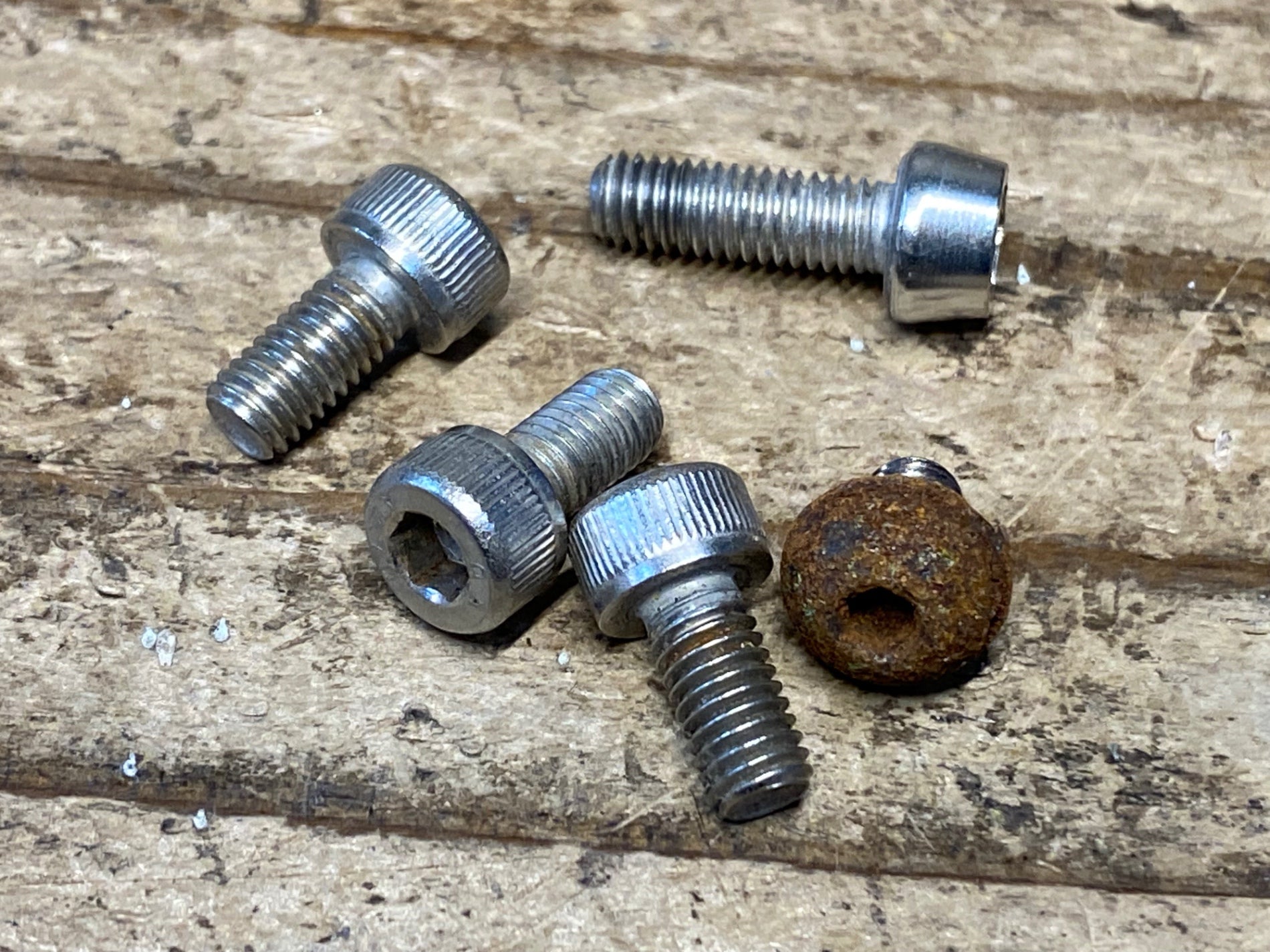 側面のスレ及び腐食が見受けられます。ボルトの錆がございます。使用に伴う傷、チェーンスレがございます。