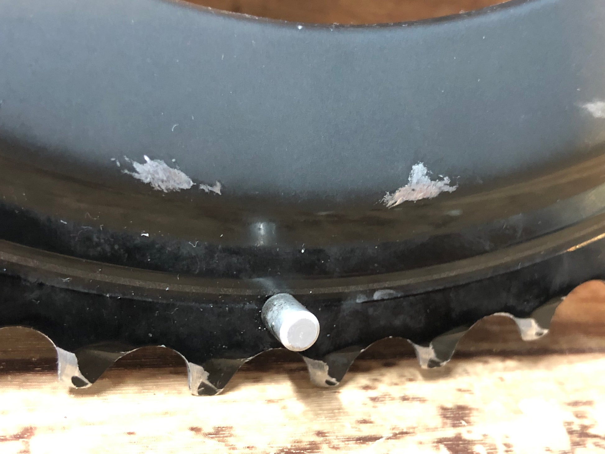 使用による歯の摩耗と汚れがございます。チェーン脱落によるガリ傷がございます。