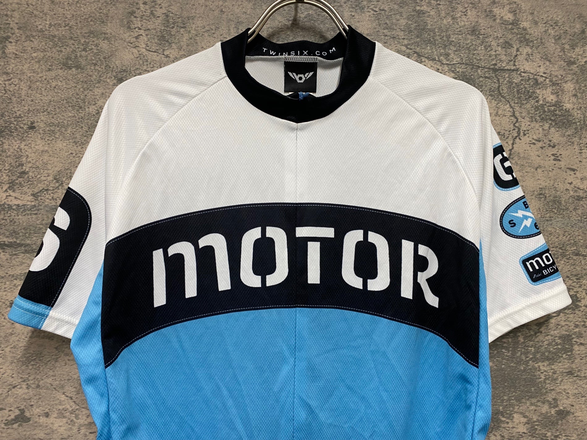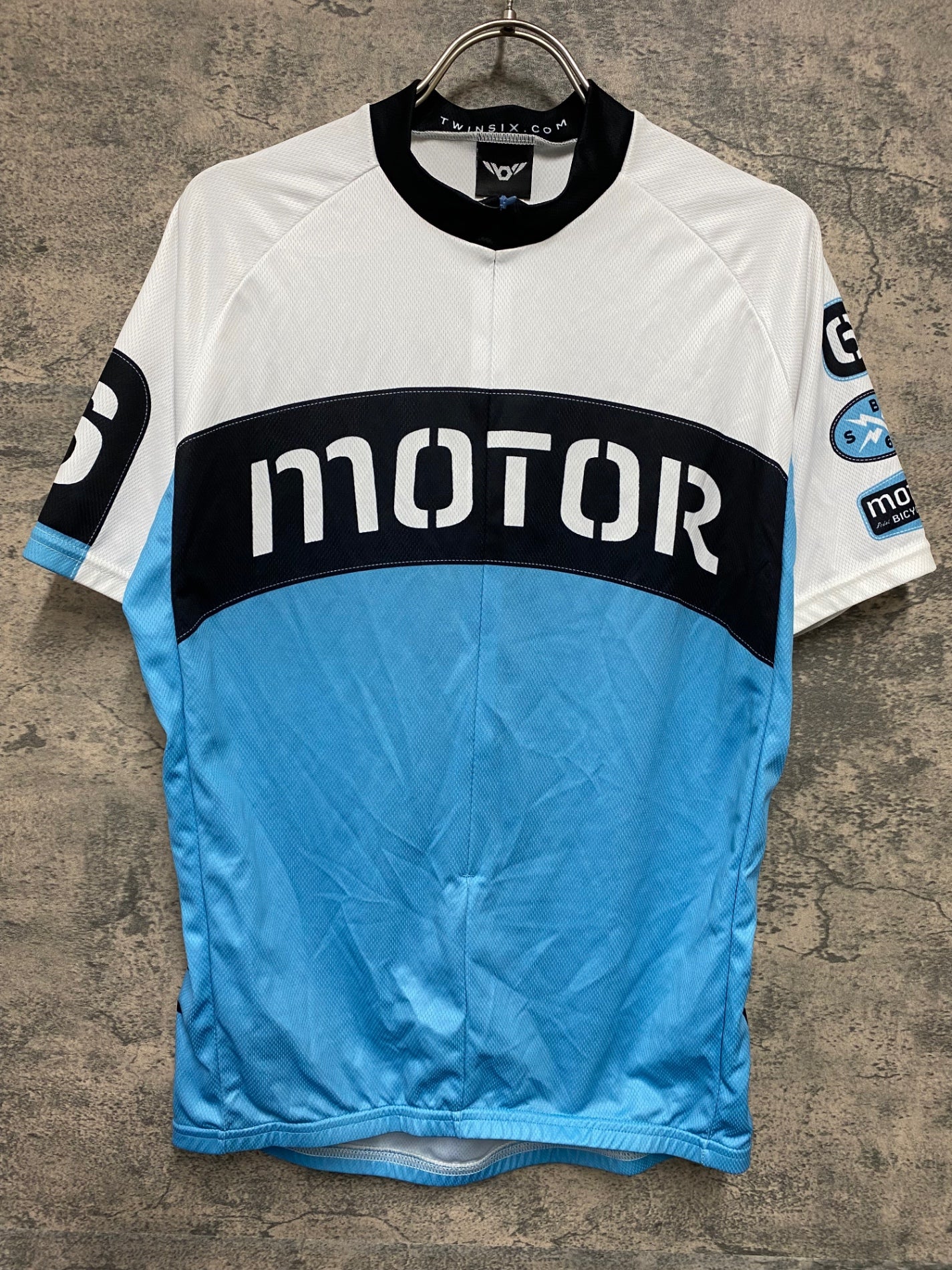 JD372 ツインシックス TWINSIX MOTOR 半袖 サイクルジャージ 白 水色 L