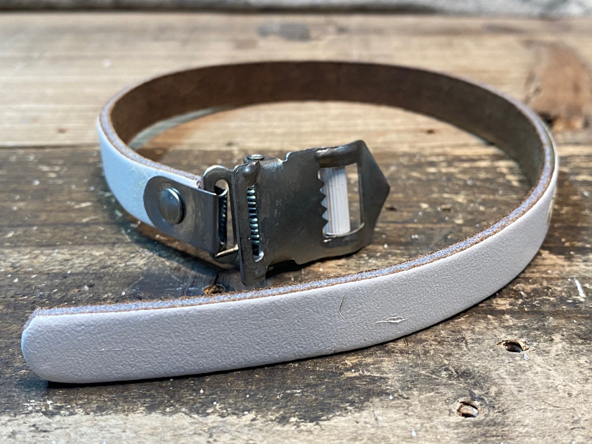 未使用ですが長期保管に伴う劣化があり、ひび割れとスレが見受けられます。
