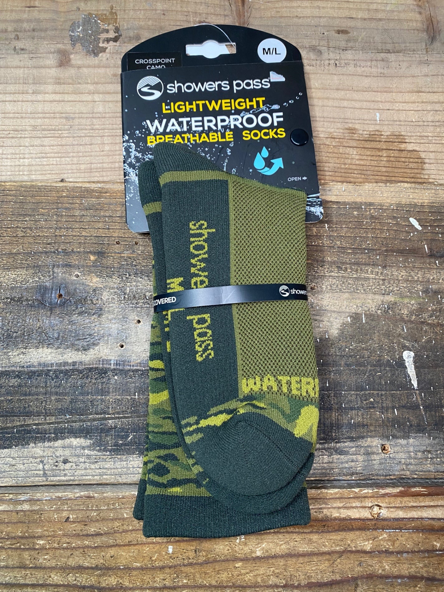 IQ176 シャワーズパス showers pass 防水ソックス 緑 迷彩 M/L