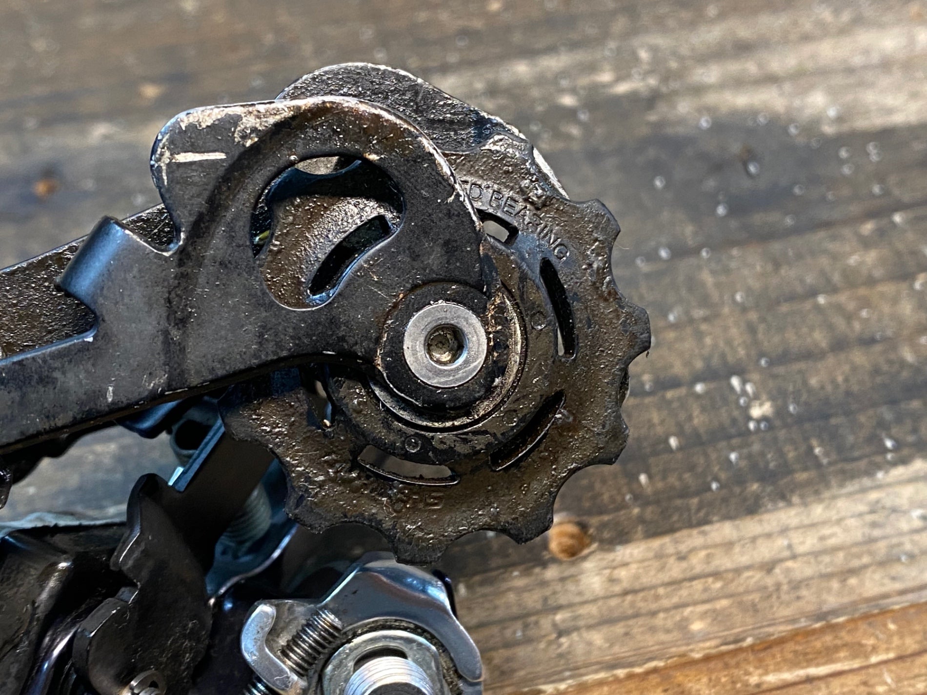 側面やプーリーケージのガリ傷がございます。歯の摩耗と内部の汚れがございます。